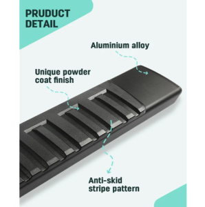 - Constructed from premium aluminum alloy, these running boards are not only sturdy and durable but also wear-resistant and corrosion-resistant. Rigorous testing ensures they can withstand salt spray and UV radiation without fading.