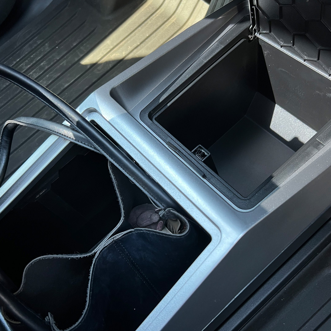 The Cybertruck Center Console Floor Organizer is designed to optimize your storage space, offering a dedicated area to keep your essentials neatly organized and easily accessible. Tailored specifically for the Cybertruck, it combines practicality with a rugged, stylish design.